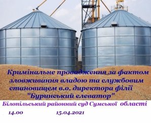 За клопотанням захисника обвинуваченого на 14.00 15.04.2021 відкладено судовий розгляд кримінального провадження стосовно колишнього в. о. директора філії ПАТ «ДПЗКУ» «Буринський елеватор» Я., обвинуваченого за частиною 2 статті 364 КК України.