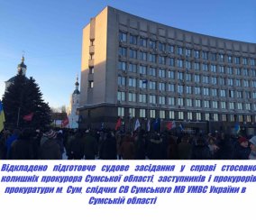 За клопотанням одного з обвинуваченого та захисника обвинуваченого суд відклав підготовче судове засідання у кримінальному провадженні за обвинувальним актом за фактами незаконного перешкоджання у січні 2014 року організації та проведення зборів та мітингів у м. Суми шляхом безпідставного притягнення громадян, які приймали в них участь, до кримінальної відповідальності та тримання їх під вартою в якості міри запобіжного заходу, а також за фактом вчинення завідомо незаконного затримання, за ознаками кримінальних правопорушень, передбачених частиною 3 статті 371, частиною 1 статті 372, статтею 340, частиною 2 статті 343 Кримінального кодексу України, на 11.00 21.05.2021.