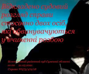 На 10.00 21.05.2021 відкладено судовий розгляд справи стосовно громадянина П., який обвинувачується за частиною 3 статті 187, частиною 1 статті 199, частиною 1 статті 263 Кримінального кодексу України, та громадянина В., обвинуваченого за частиною 3 статті 187, частиною 1 статті 263 Кримінального кодексу України. В судовому засіданні допитали потерпілих і свідків.