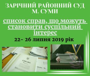 22.07.2019 р. на 13 год. 30 хв. Кримінальне провадження 591/2823/19 стосовно 16-річного хлопця, якого обвинувачено у зґвалтуванні ( ч. 1 ст. 152 КК України), суддя – Капкін О.Б.