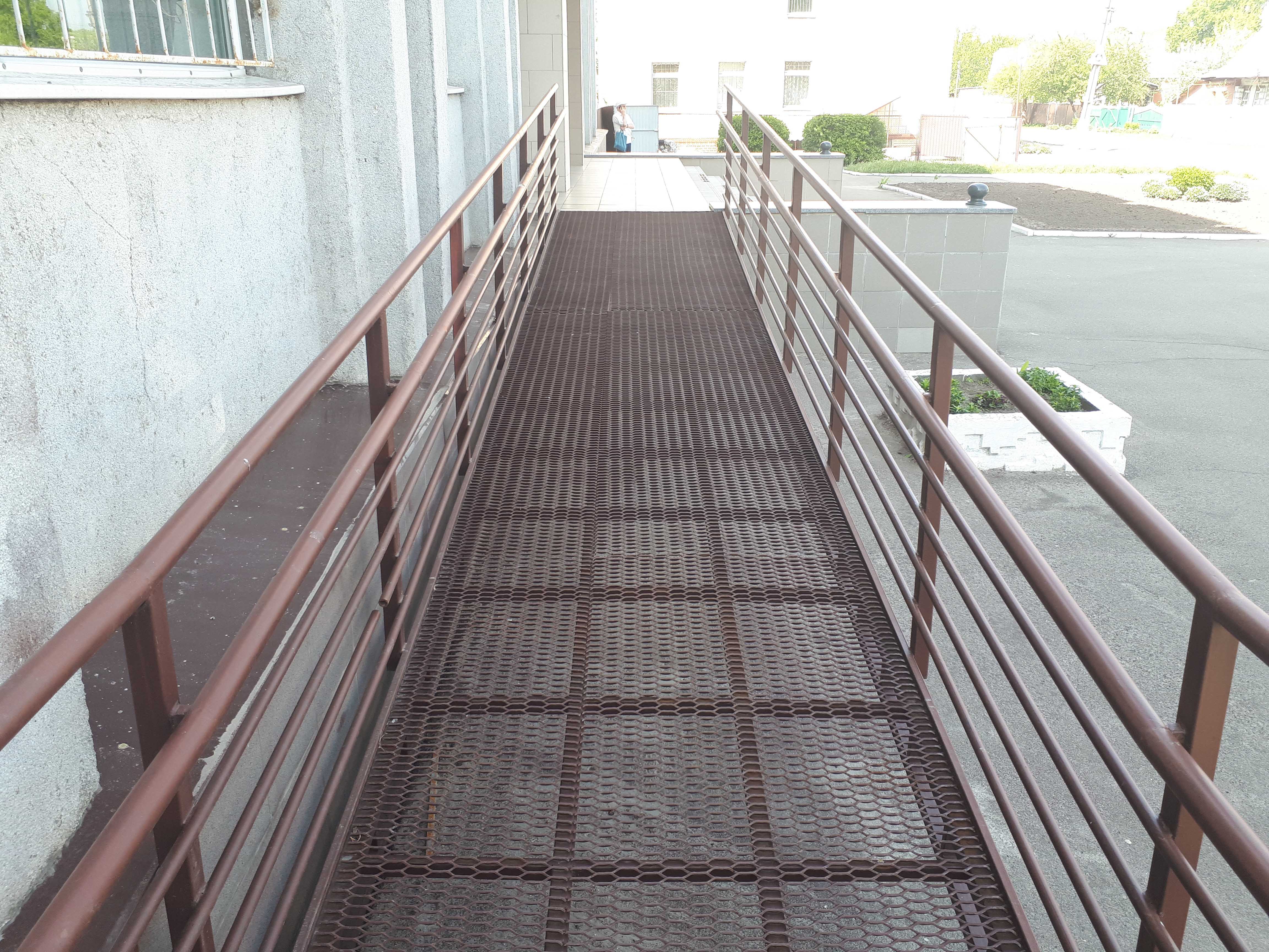 Вхід до приміщення суду обладнано пандусом зі зручними просторими майданчиками.