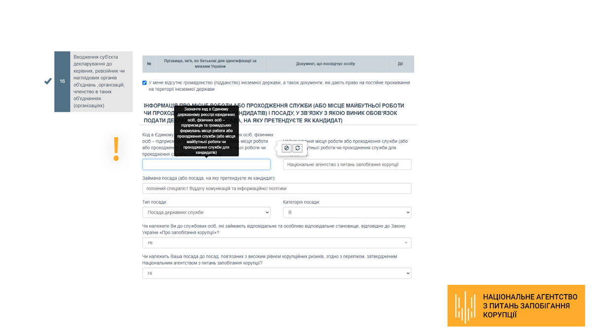 Ми розуміємо, що такі зміни можуть викликати незручності для декларантів. Тому Національне агентство з питань запобігання корупції (НАЗК) зробило зі свого боку все можливе, щоби суб’єктам було зручно заповнювати ці дані, зробивши процес користування Реєстром декларацій більш інтуїтивним.
