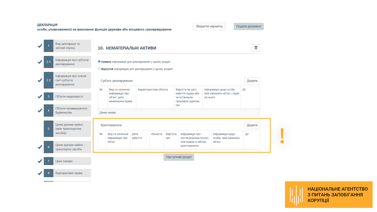 Розділ 10 «Нематеріальні активи» декларації — оновлення блоку