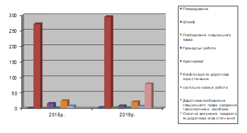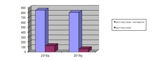 Також вбачається, що 2019 року порівняно з 2018 роком на 64 кримінальних проваджень (50,39 %) було розглянуто менше (127 2018 року проти 63 2019 року).