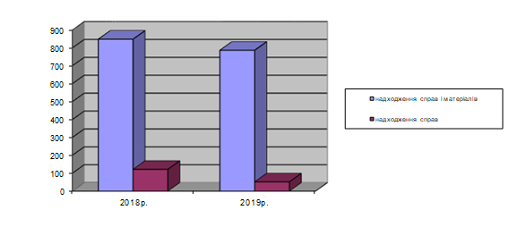 Порівняльні показники справ і матеріалів, що надійшли до Тростянецького районного суду у 2019-2018 роках вбачаються з Діаграми №1.
