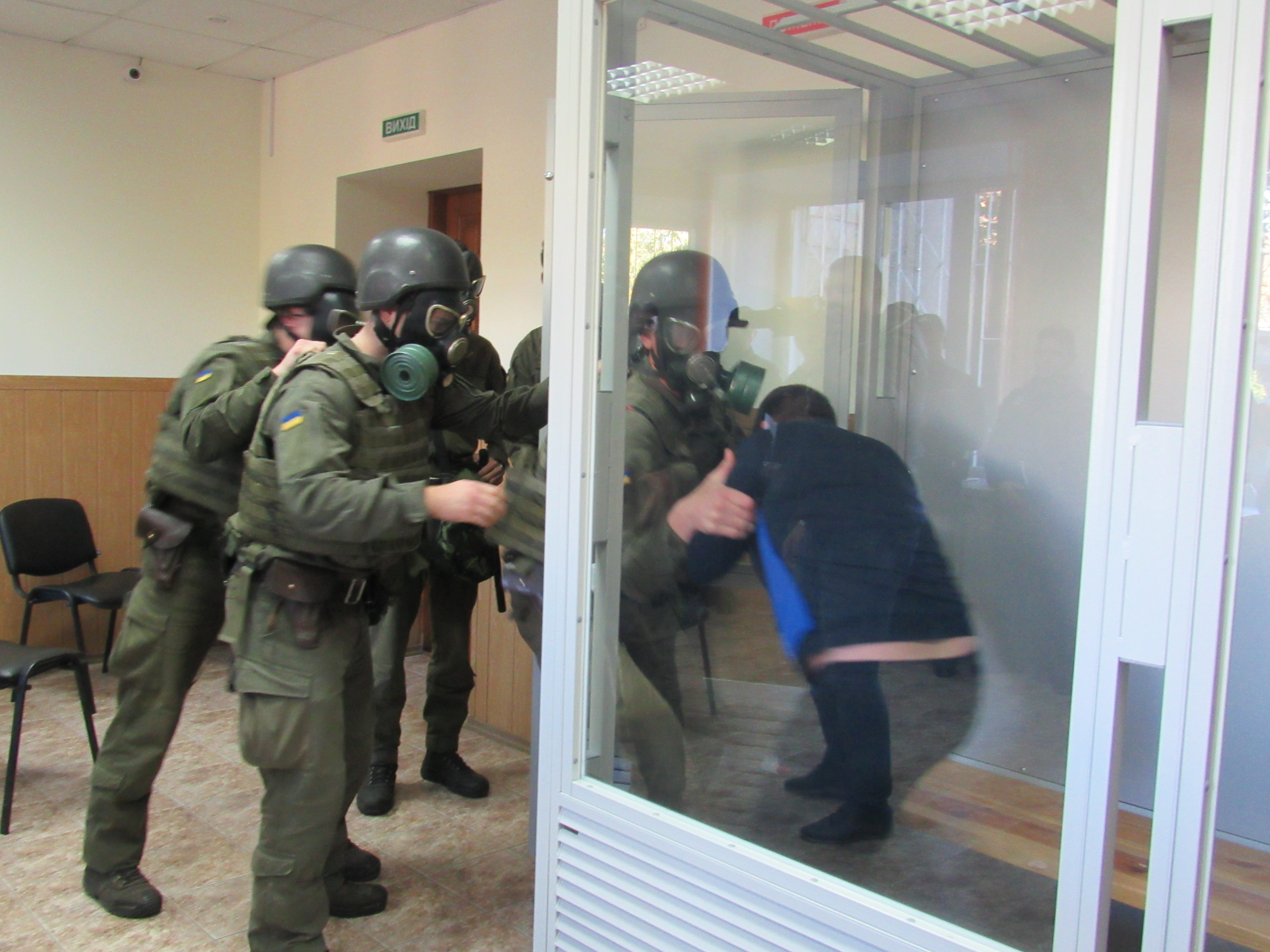 Військовослужбовці, працівники роти поліції особливого призначення із залученням конвойного підрозділу відпрацювали практичні дії та навички під час нападу та групової непокори громадян під час судового засідання, а також затримання підсудних у випадку втечі.