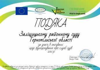 Заліщицький районной суд Тернопільської області прийняв участь в опитуванні щодо функціонування прес-служб судів 2018р.. та отримав подяку від директора ГО "Вектор прав людини" Велерія Рибак.