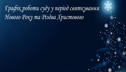 Монастириський районний суд Тернопільської області інформує про графік роботи у період святкування Нового Року та Різдва Христового.