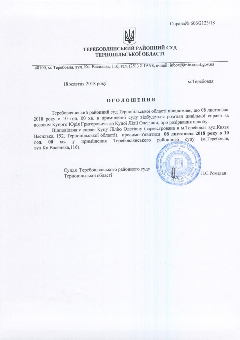 Суд викликає Куцу Лілію Олегівну