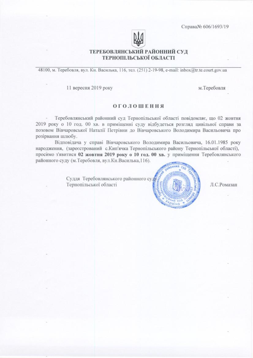 Суд викликає Вівчаровського В.В.