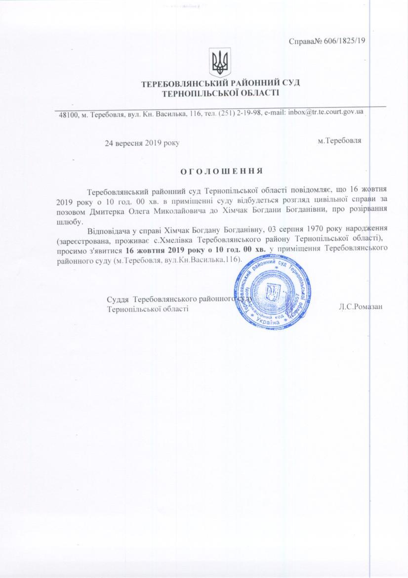 Суд викликає Хімчак Б.Б.