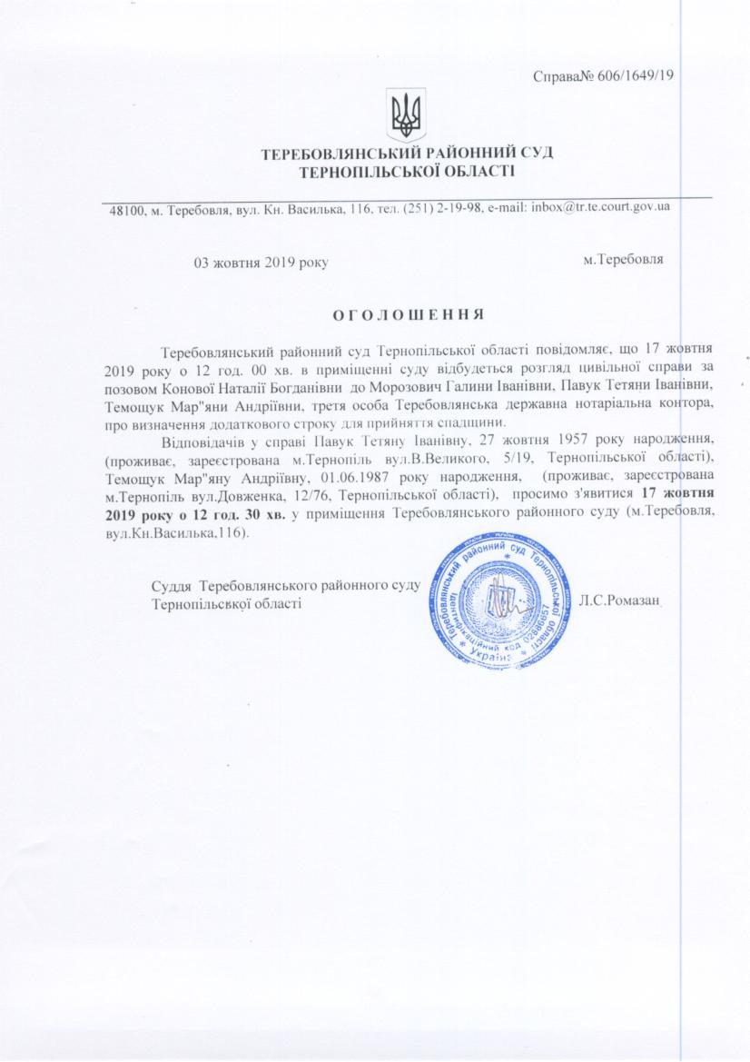 Суд викликає Павук Т.І.