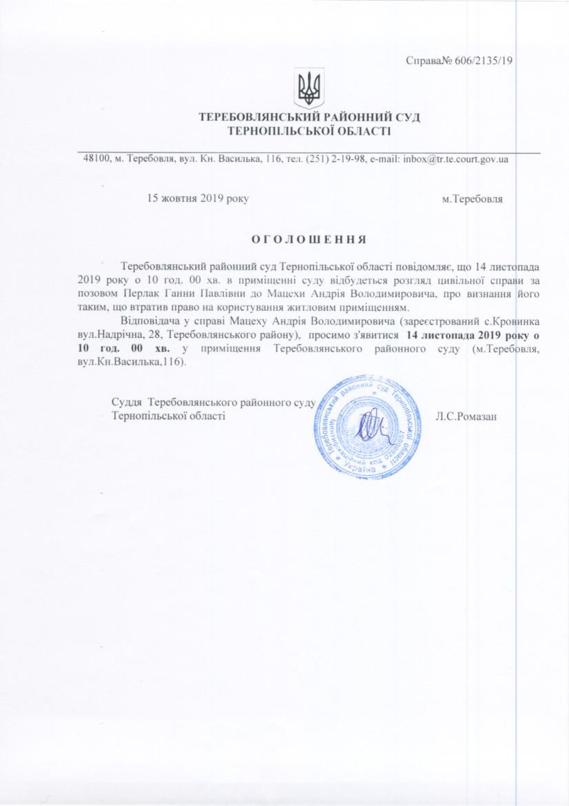 Суд викликає Мацеха А.В.