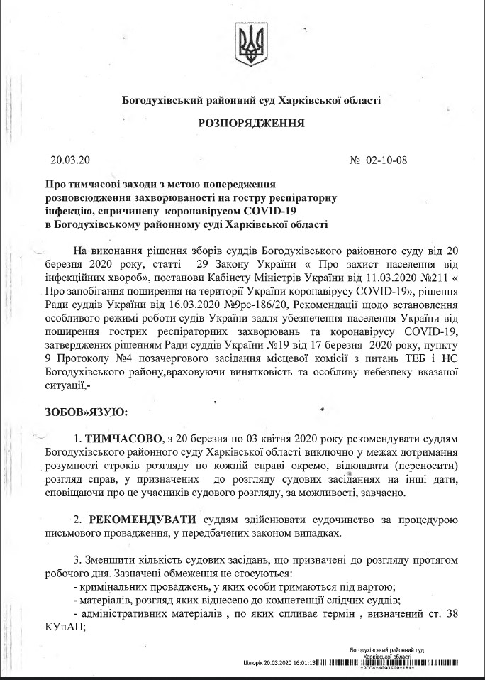 Про тимчасові заходи з метою попередження розповсюдження COVID-19
