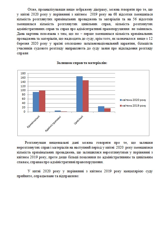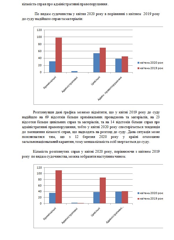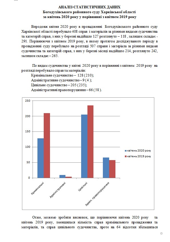 АНАЛІЗ СТАТИСТИЧНИХ ДАНИХ Богодухівського районного суду Харківської області за квітень 2020 року у порівнянні з квітнем 2019 року