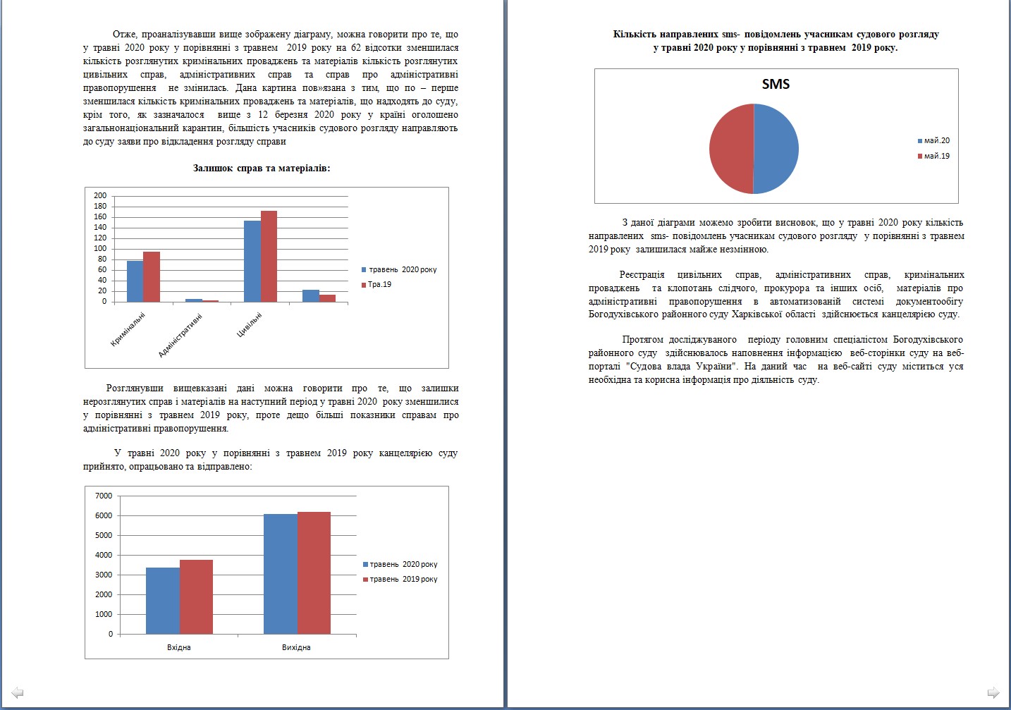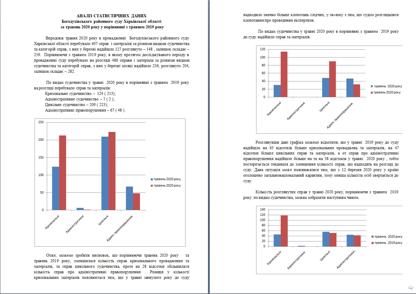 АНАЛІЗ СТАТИСТИЧНИХ ДАНИХ Богодухівського районного суду Харківської області за травень 2020 року у порівнянні з травнем 2019 року