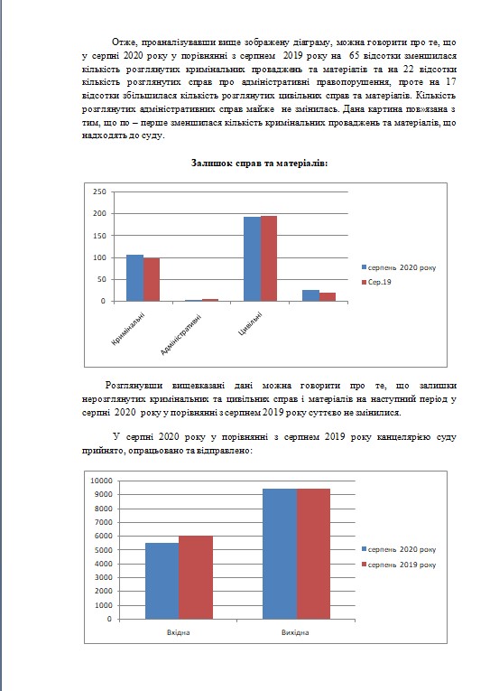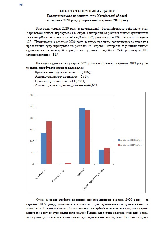 АНАЛІЗ СТАТИСТИЧНИХ ДАНИХ Богодухівського районного суду Харківської області за серпень 2020 року у порівнянні з серпнем 2019 року