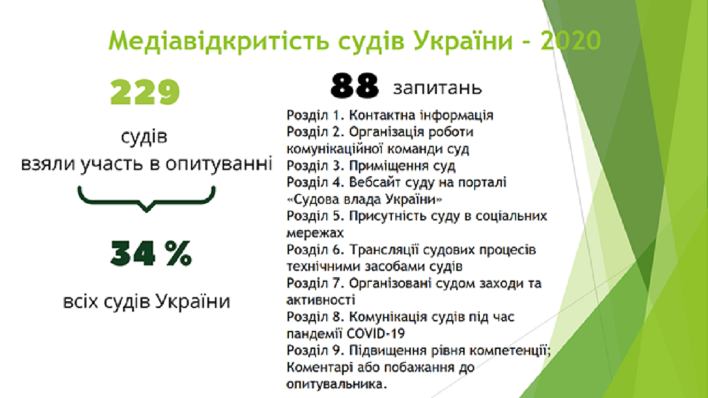 Дослідження "Медіавідкритість судів України-2020" присвячене вивченню зовнішніх і внутрішніх комунікацій судової влади.