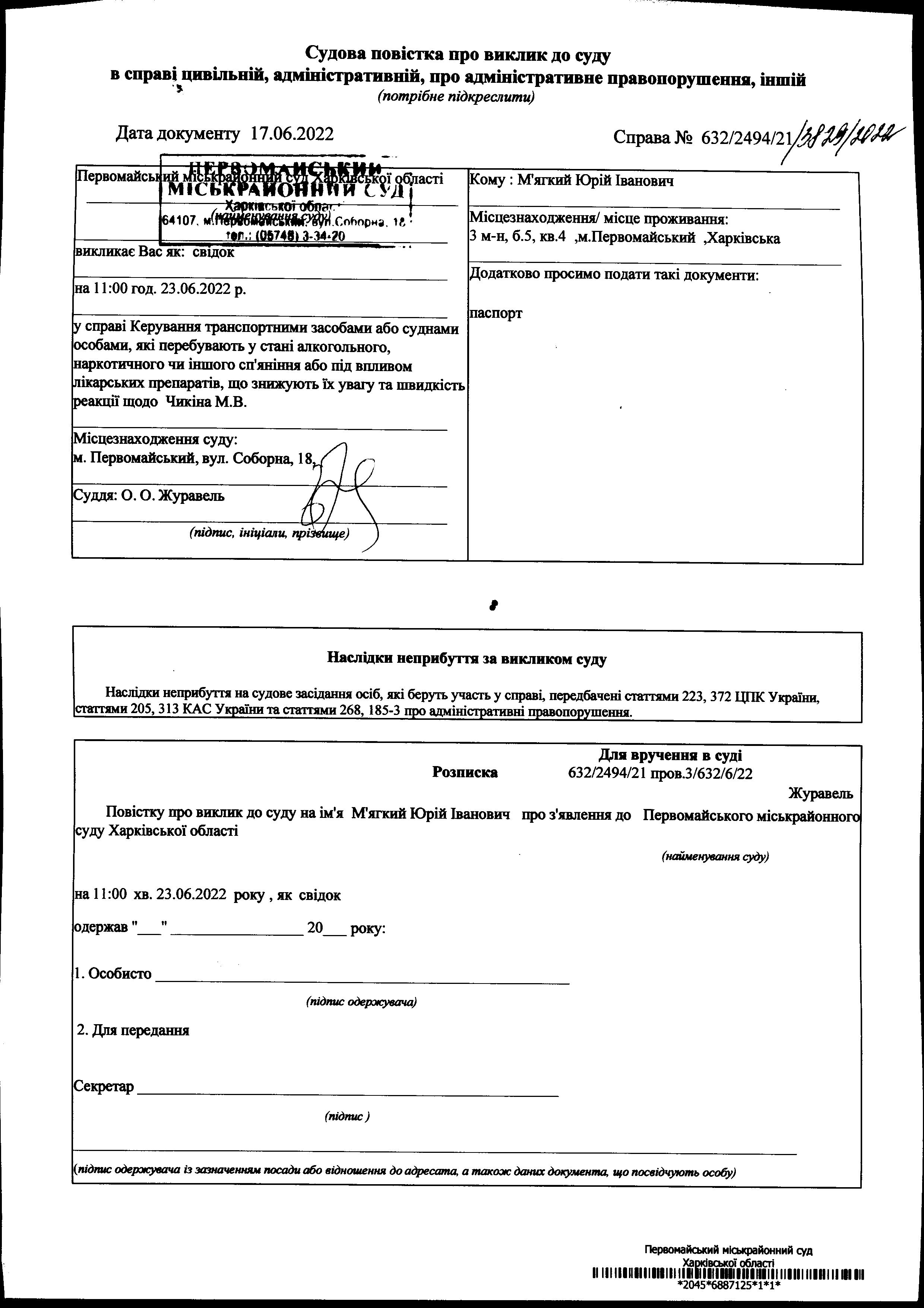 Виклик М'ягкий Ю.І.