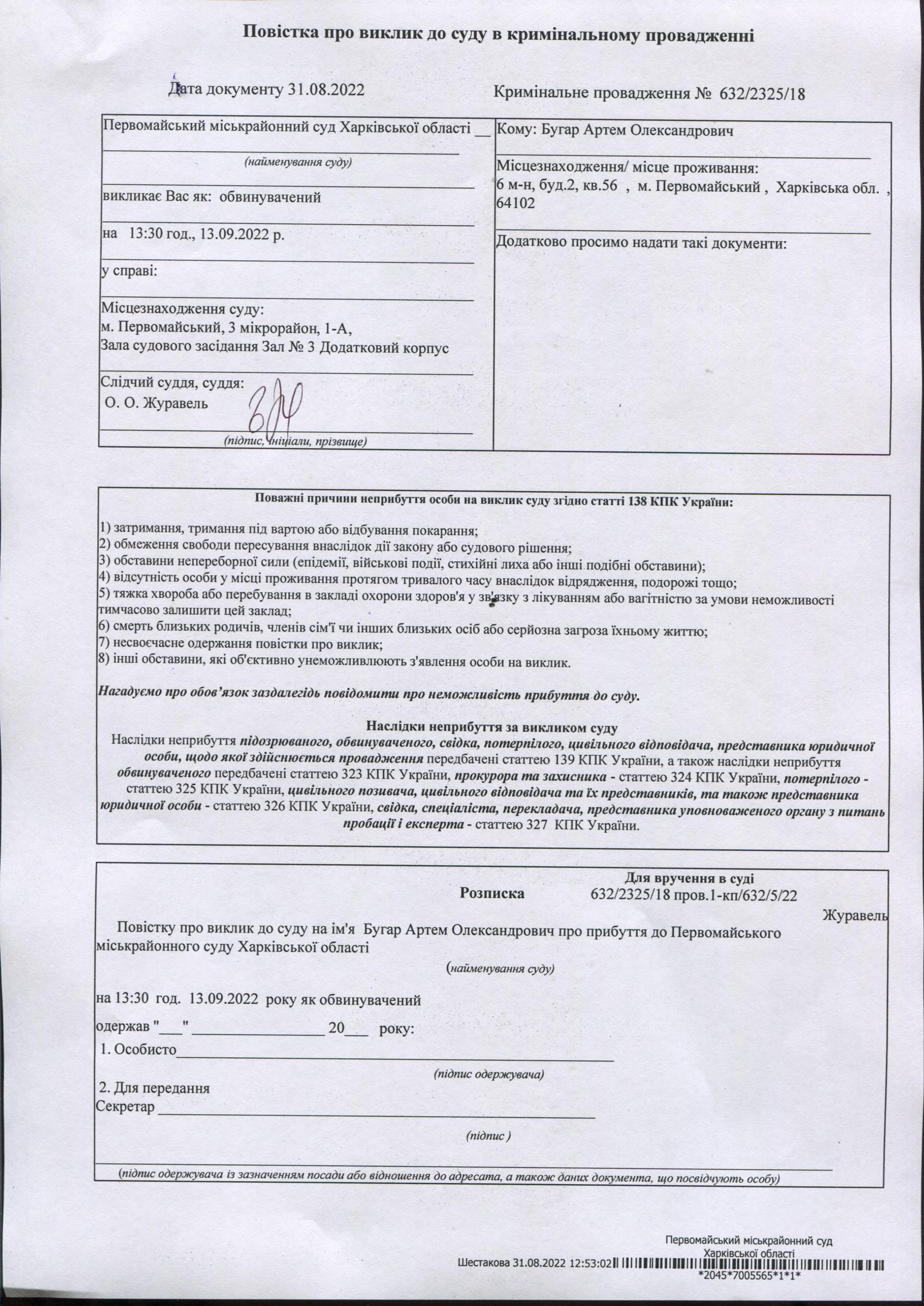 Первомайський міськрайонний суд Харківської області