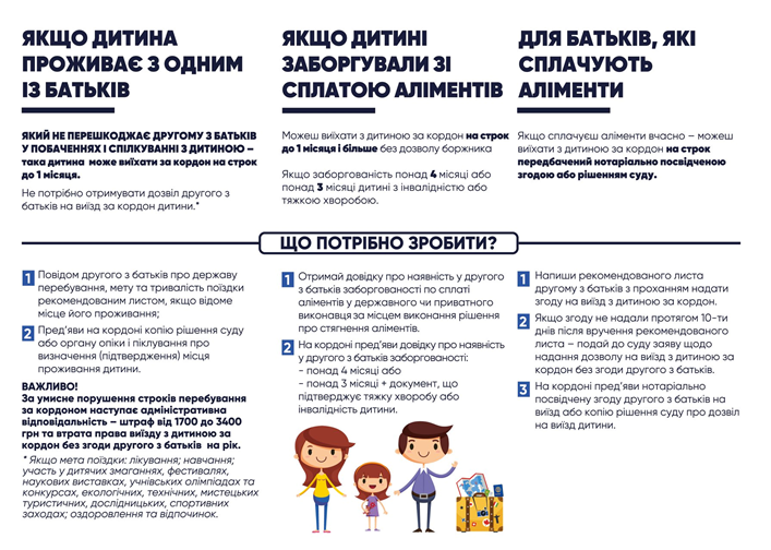 Якщо батьки вчасно сплачують аліменти, а дозвіл на виїзд дитини за кордон не дають, то слід рекомендованим листом надіслати листа другому з батьків з прохання надати дозвіл на виїзд. Якщо в десятиденний термін після отримання листа згоди не було надано, то необхідно звернутися до суду.