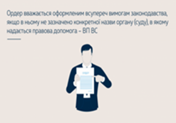 Отже, в ордері на надання правової допомоги має бути зазначено не абстрактний орган державної влади, а конкретна назва такого органу, зокрема суду.