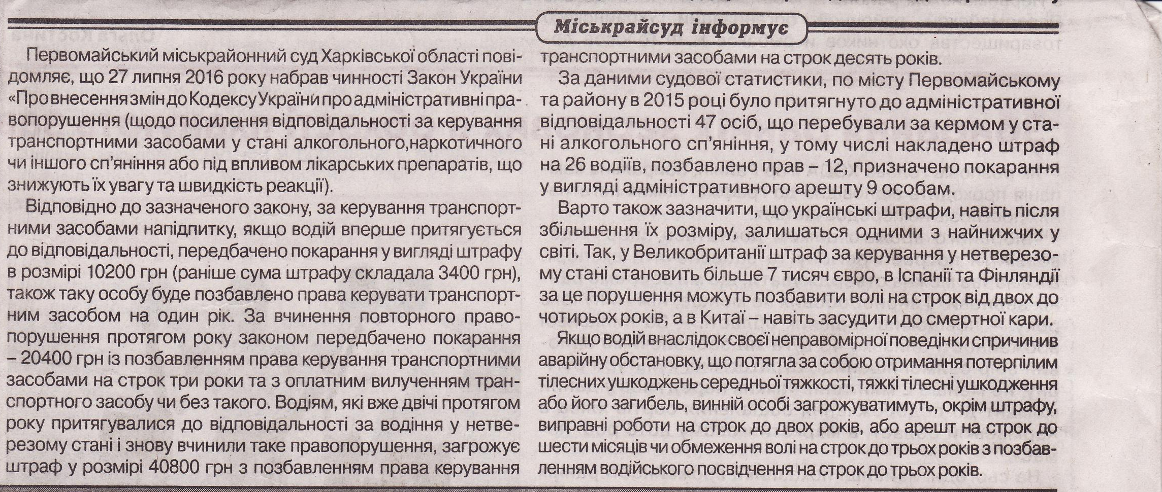 Штрафи за керування авто у стані алкогольного сп'яніння