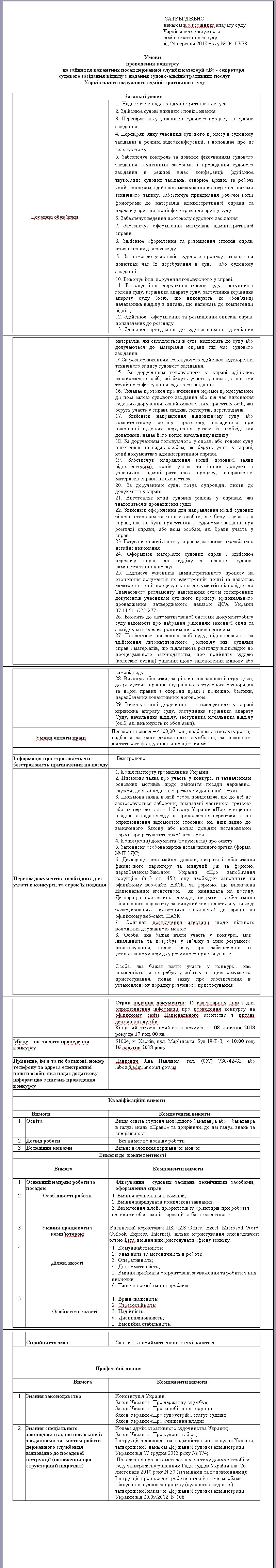 Умови проведення конкурсу на зайняття вакантних посад державної служби категорії «В» - секретаря судового засідання відділу з надання судово-адміністративних послуг Харківського окружного адміністративного суду