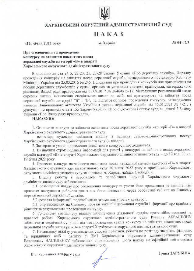Тоді, пропонуємо приєднатись до команди Харківського окружного адміністративного суду!