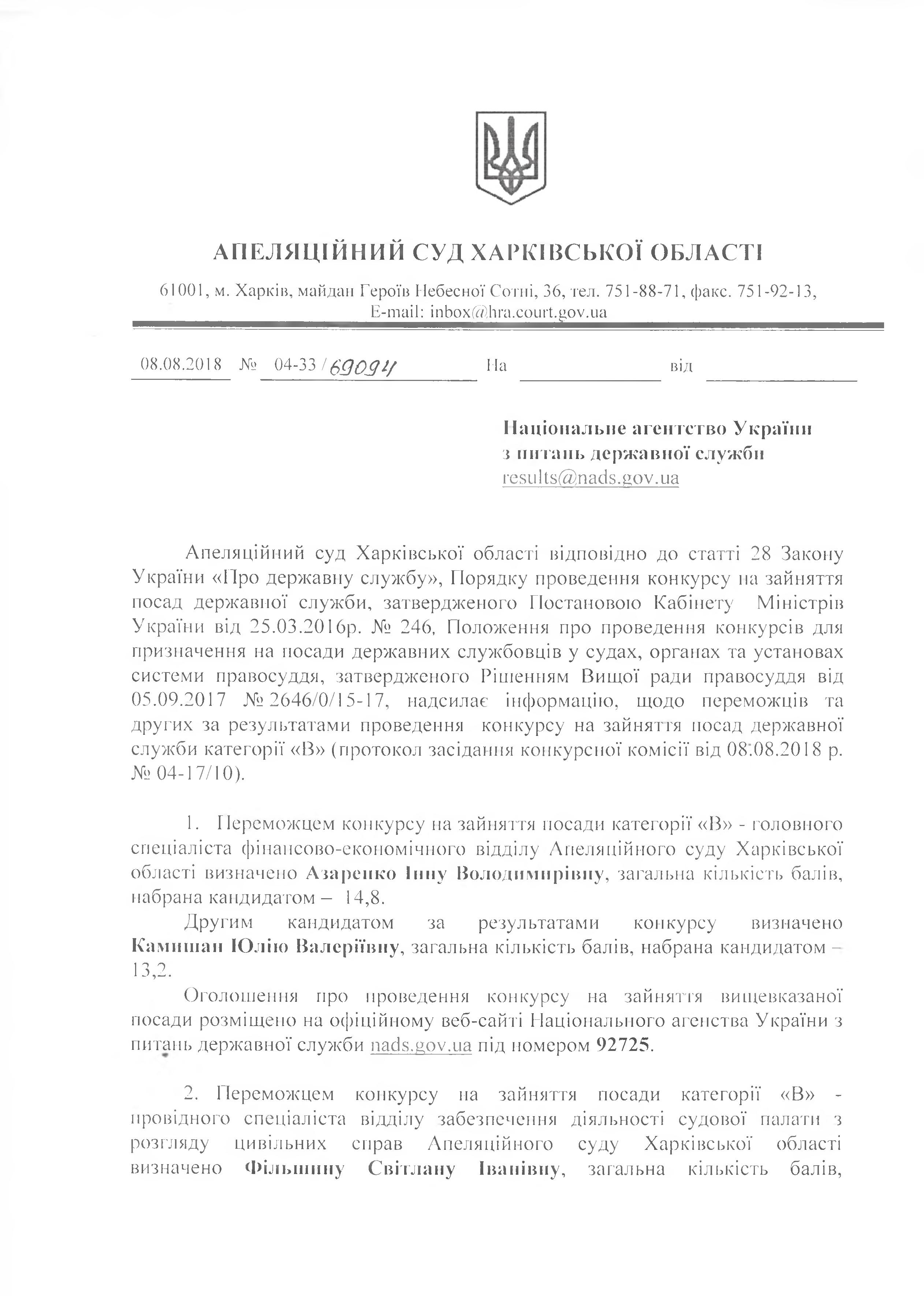 Оприлюднення результатів конкурсу