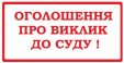 28 лютого 2020, 16:07Ізяславський районний суд Хмельницької області викликає як відповідача Рудницького Володимира Едуардовича.