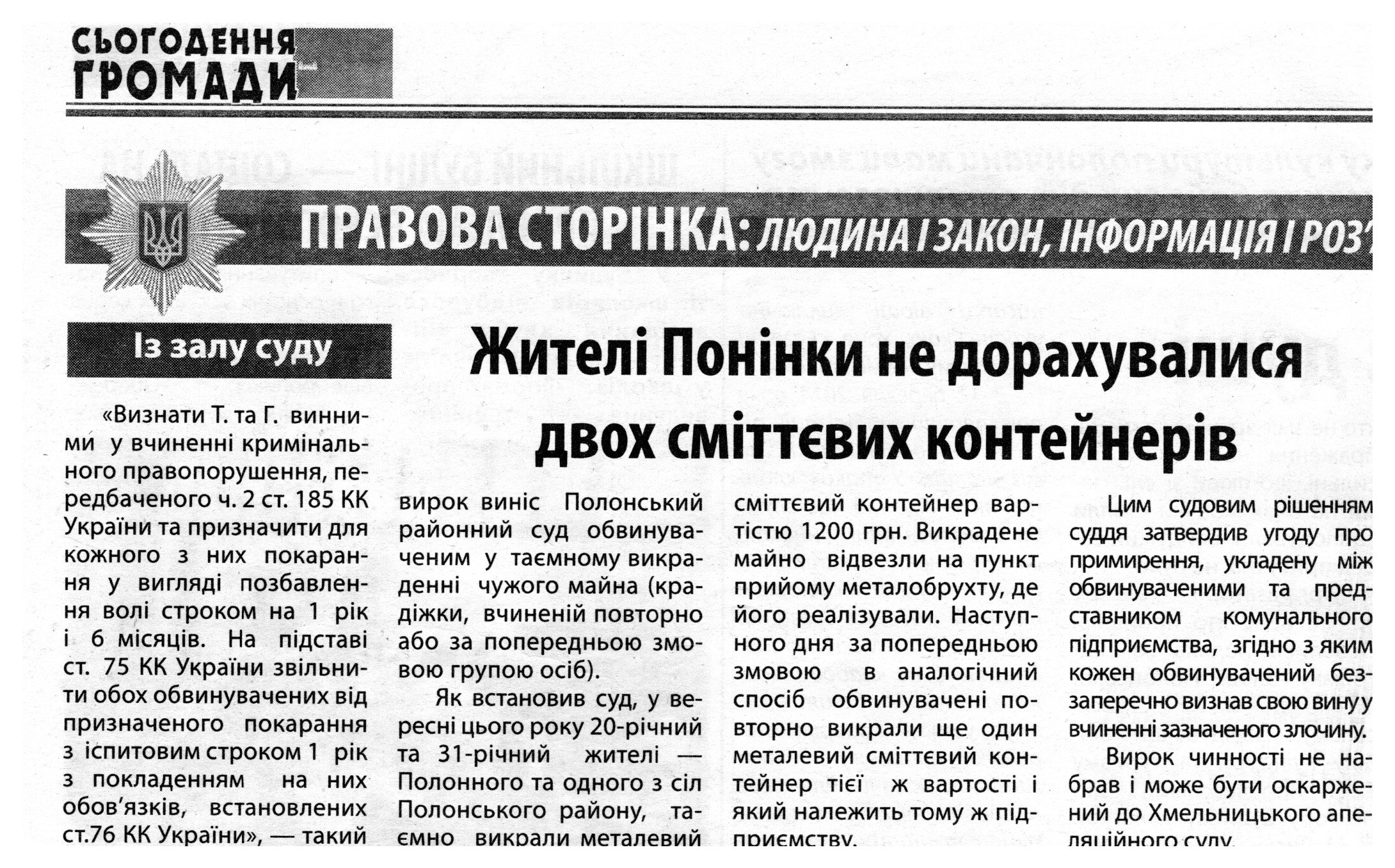Жителі Понінки не дорахувалися двох сміттєвих контейнерів
