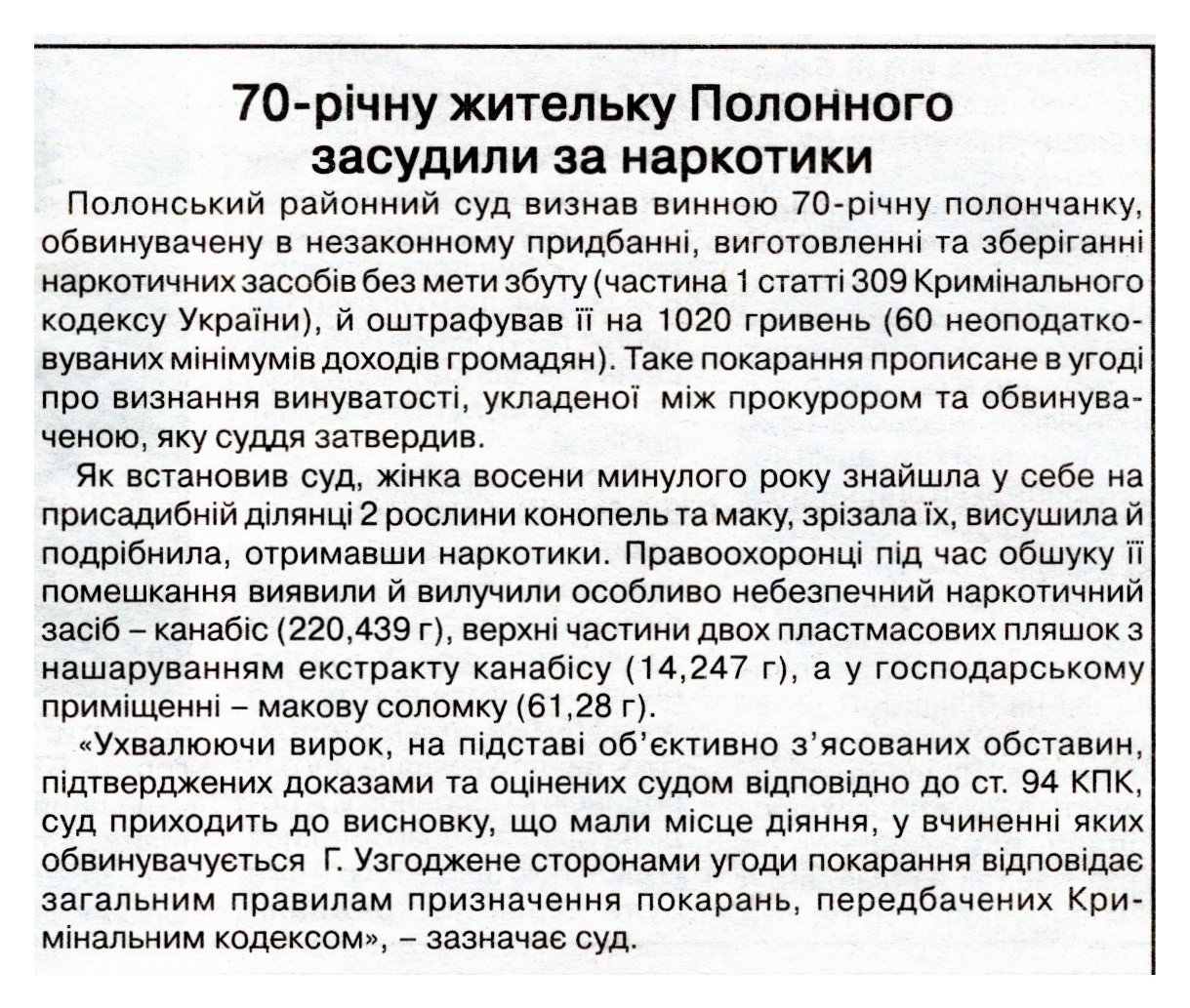 70-річну жительку Полонного засудили за наркотики