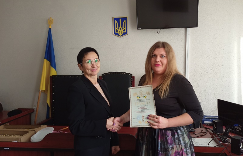Голова суду вручила працівникам суду Грамоти Територіального управління Державної судової адміністрації у Черкаській області – за плідну співпрацю, особистий внесок у діяльність і розвиток органів судової влади та з нагоди святкування дня юриста: помічнику судді- Сергію ГОЛОВАТОМУ та секретарю судового засідання - Нелі БІЛЕНКО.