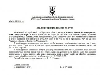 У разі відсутності можливості прибути до суду у встановлений день та час, особа має право завчасно подати заяву про розгляд справи без його участі, відзив/заперечення проти позову, заяву про визнання позову разом із копією паспорта або іншого документа, який посвідчує особу, на офіційну електронну адресу суду: inbox@kn.ck.court.gov.ua або на факс суду (04736) 3-21-33.