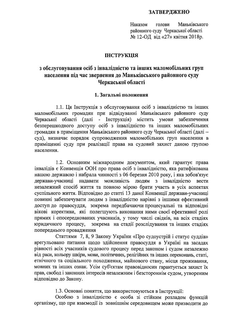 Інструкція з обслуговування осіб з інвалідністю та інших маломобільних груп населення під час звернення до Маньківського районного суду Черкаської області