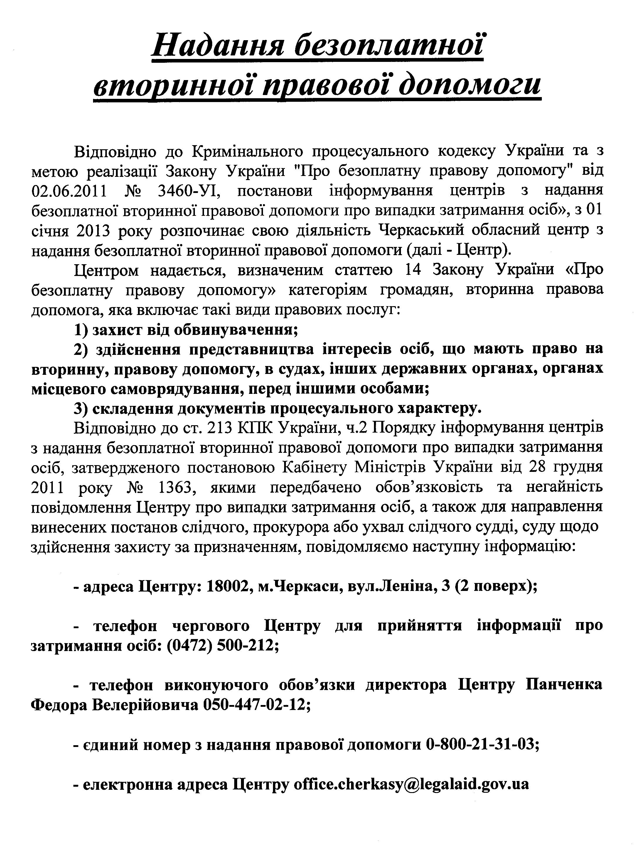 Центр надання безоплатної вторинної правової допомоги в Черкаській області