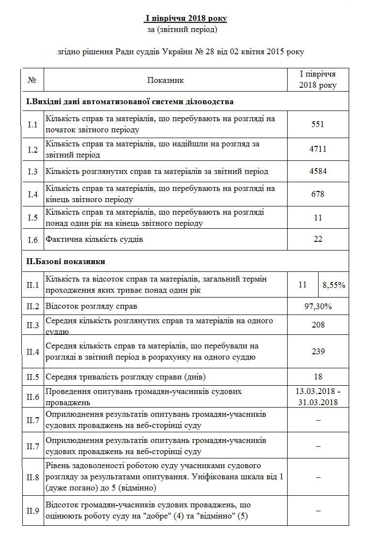Базові показники ефективності діяльності апеляційного суду Черкаської області за перше півріччя 2018 року