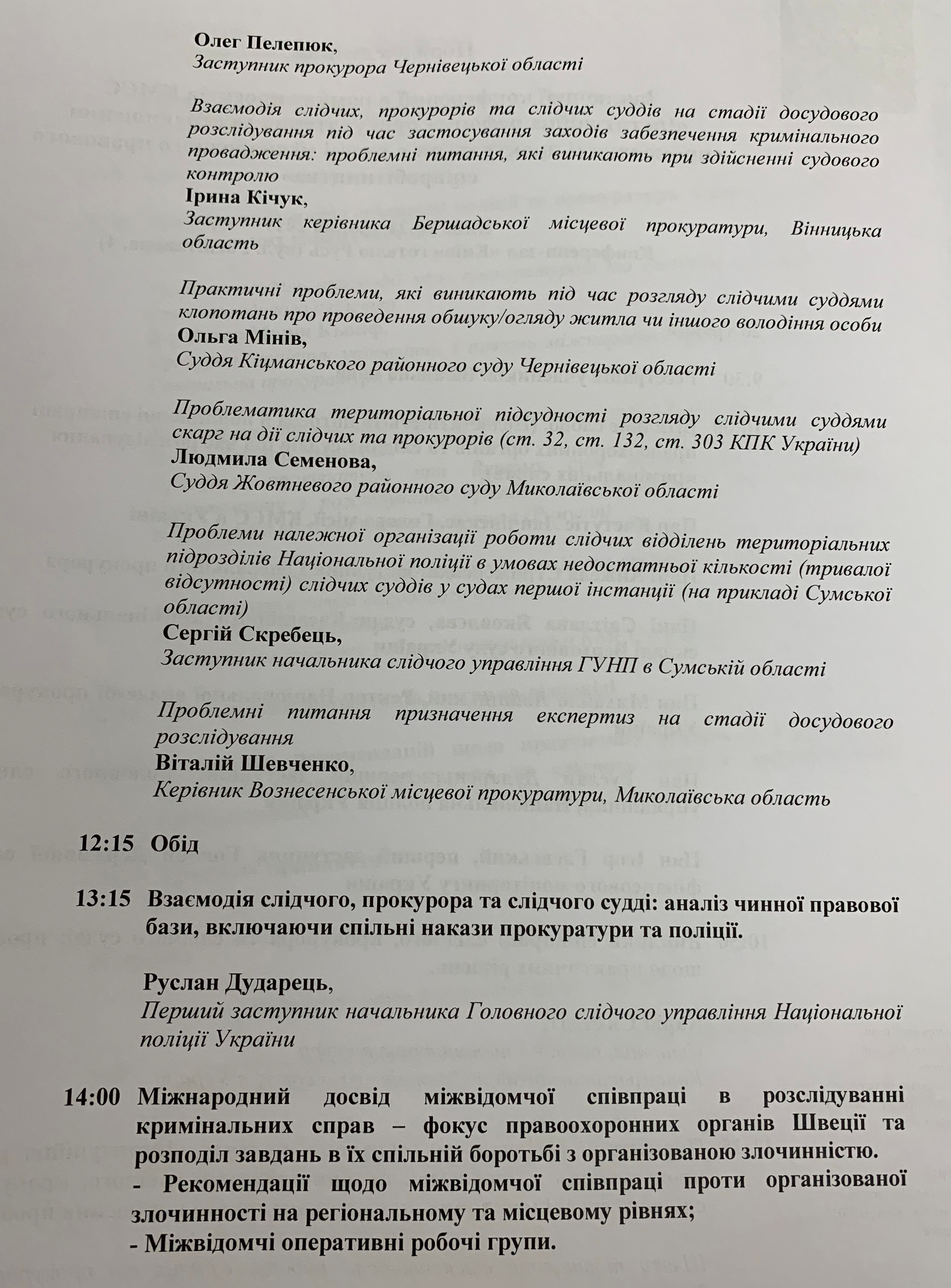 Ольга Мінів в своїй доповіді наголосила на тому, що окремі слідчі дії, в першу чергу обшуки, часто викликають численні нарікання з боку осіб, стосовно яких вони проводились. Дана проблематика є актуальною, оскільки прогалини в КПК, що стосують проведення обшуку житла чи іншого володіння особи, призводять до грубих порушень прав і свобод громадян та створюють умови для виникнення слідчих помилок і порушення засад кримінального провадження.