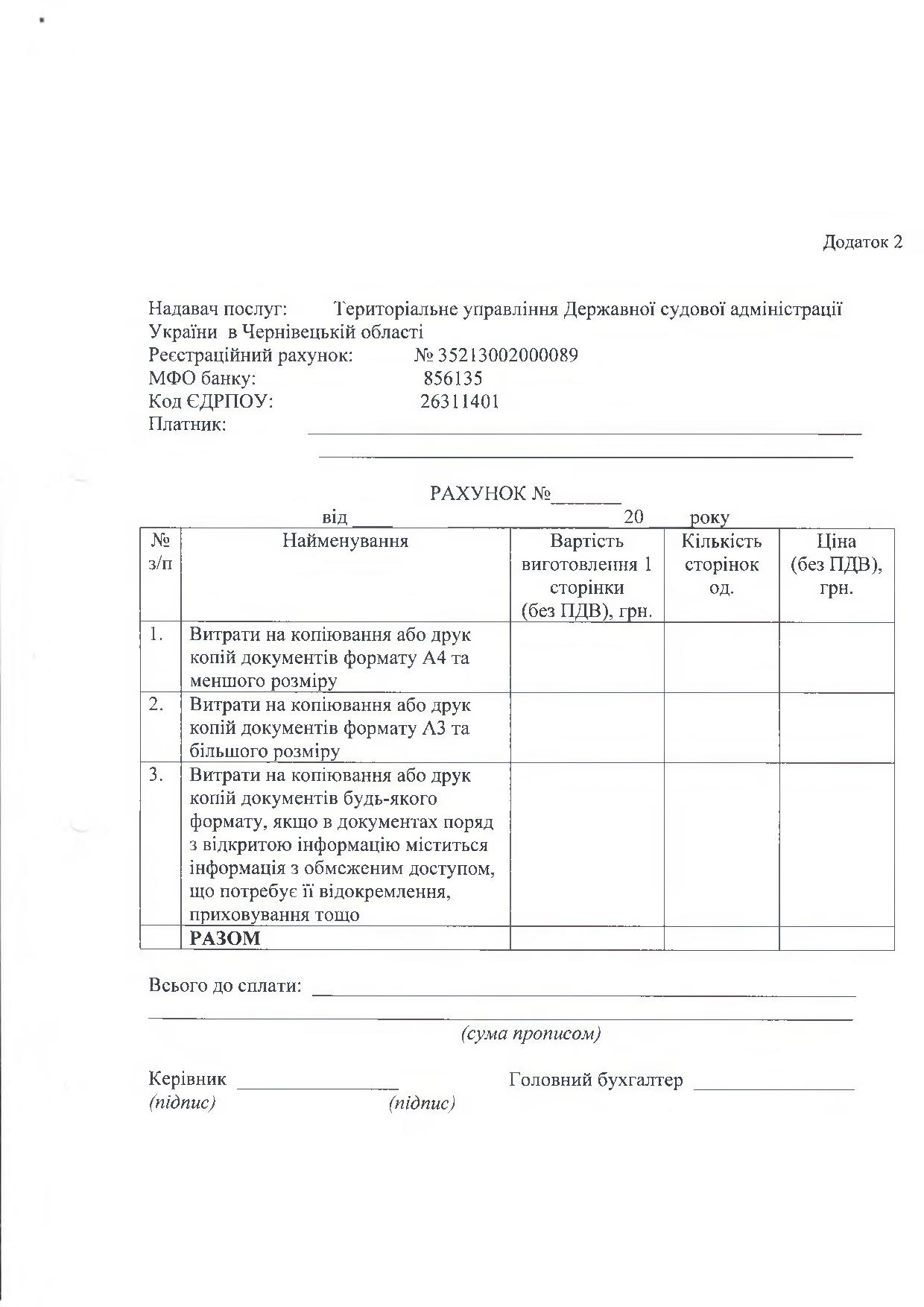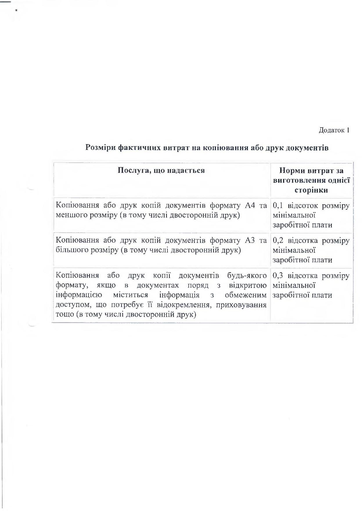 Інструкція Додаток 1 Розміри фактичних витрат на копіювання або друк Додаток 2
