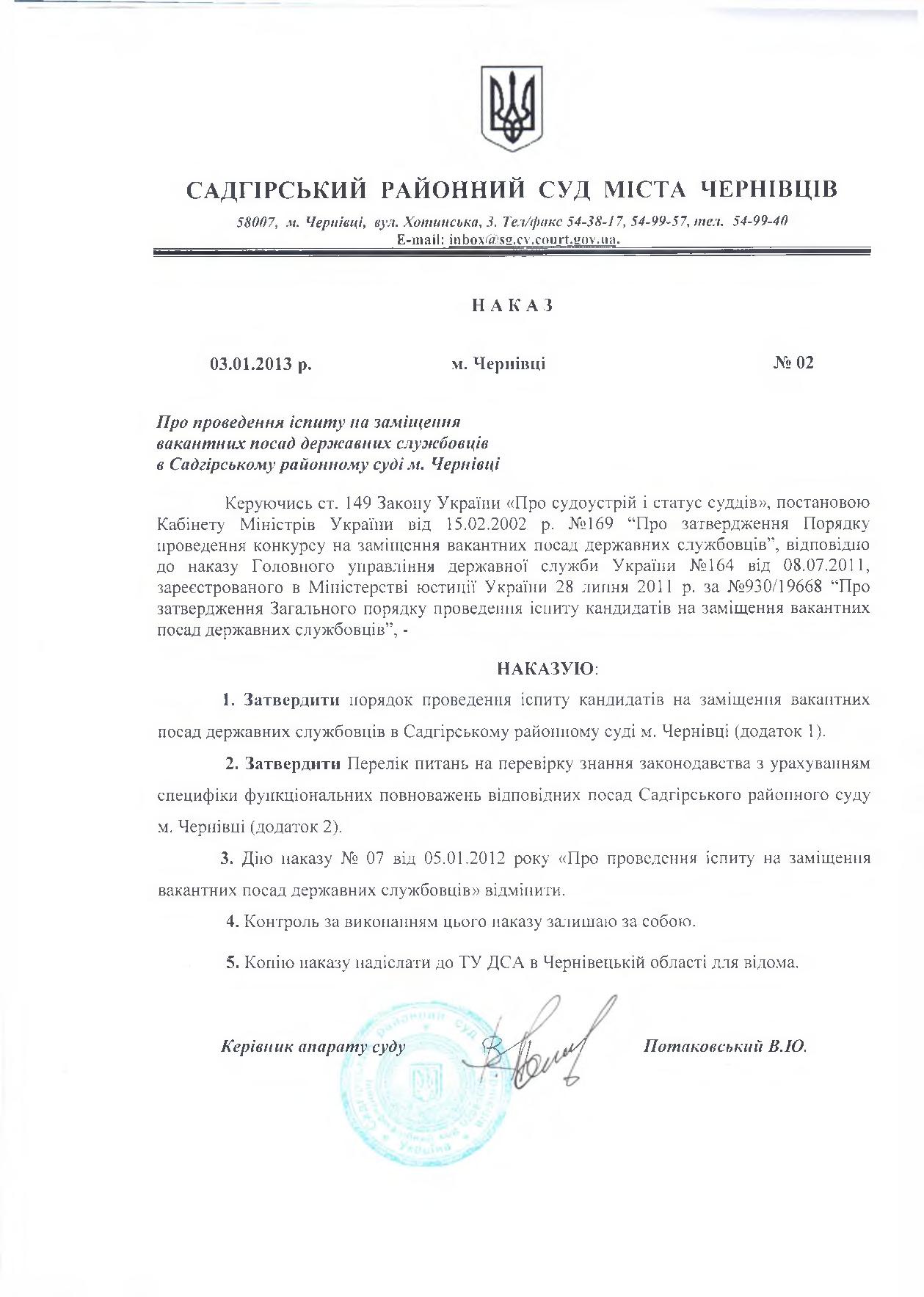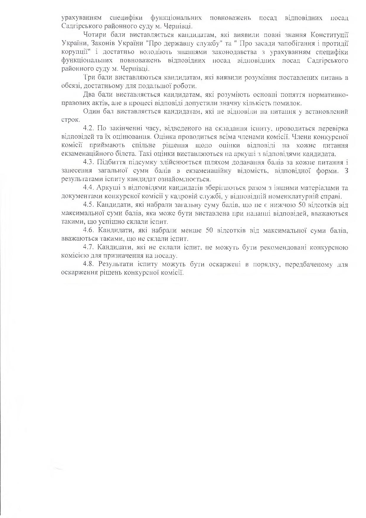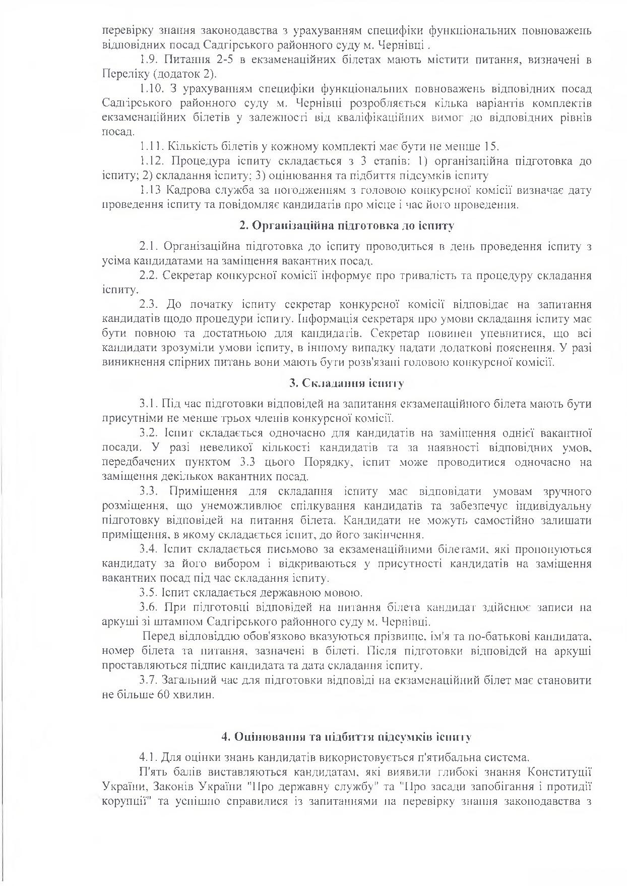 на перевірку знання законодавства з урахуванням специфіки функціональних повноважень відповідних посад Садгірського районного суду м. Чернівці