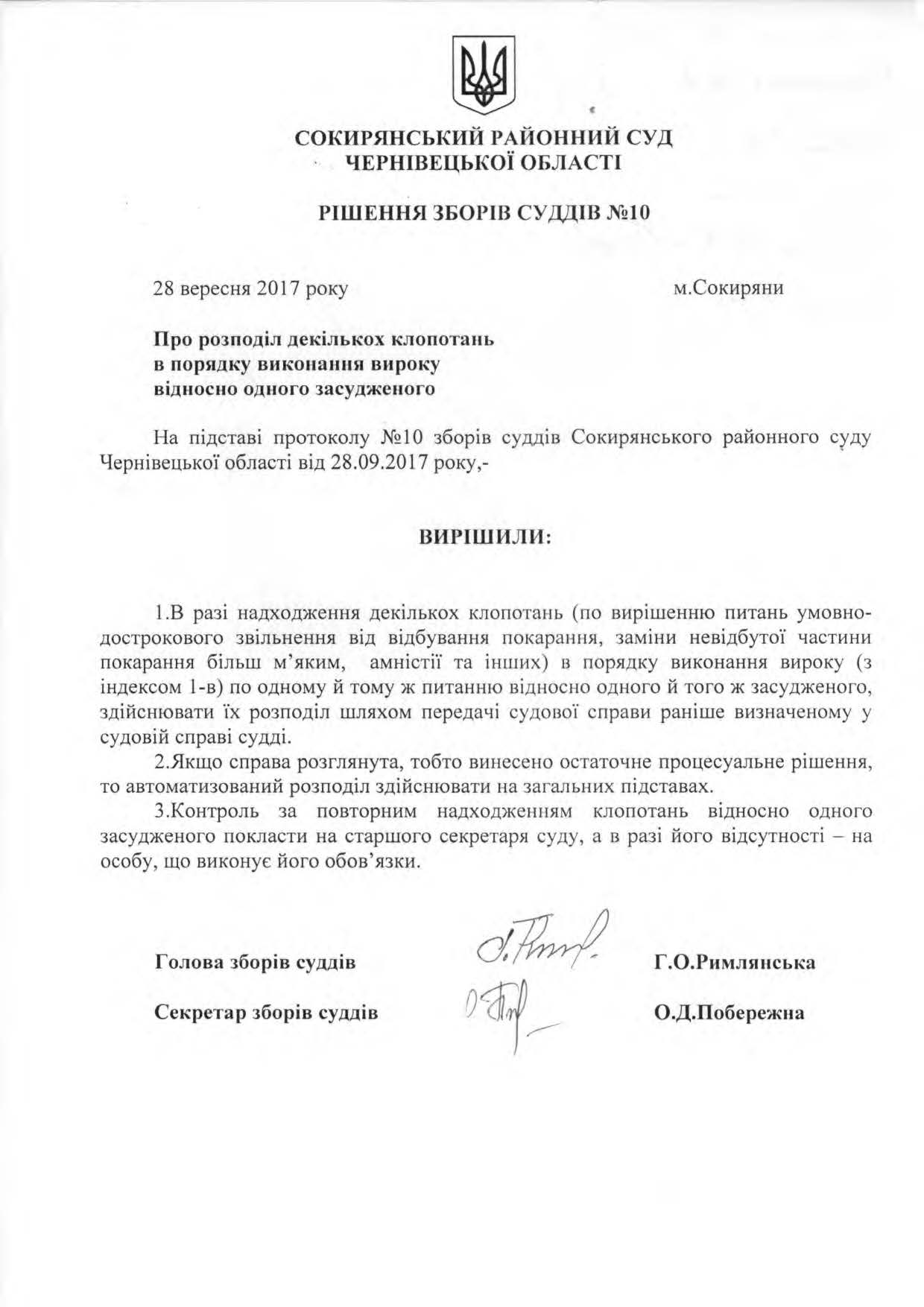Рішення зборів № 10 (Про розподіл декількох клопотань в порядку вироку відносно одного засудженого)