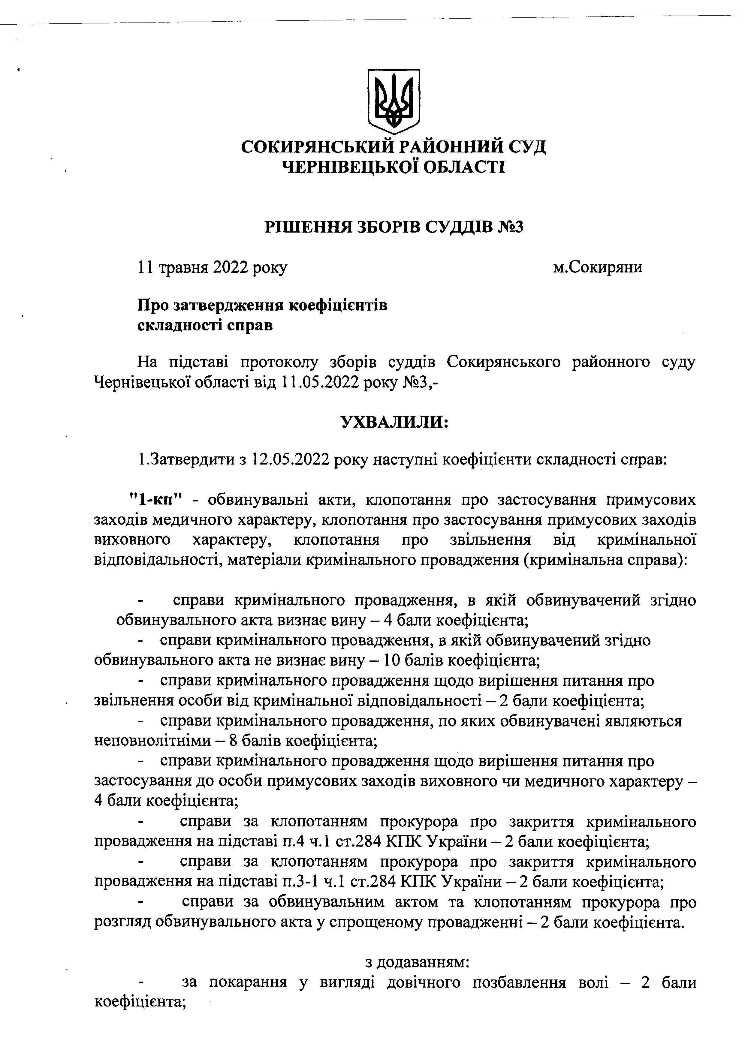 Рішення зборів № 3 (Про затвердження коефіцієнтів складності справ)