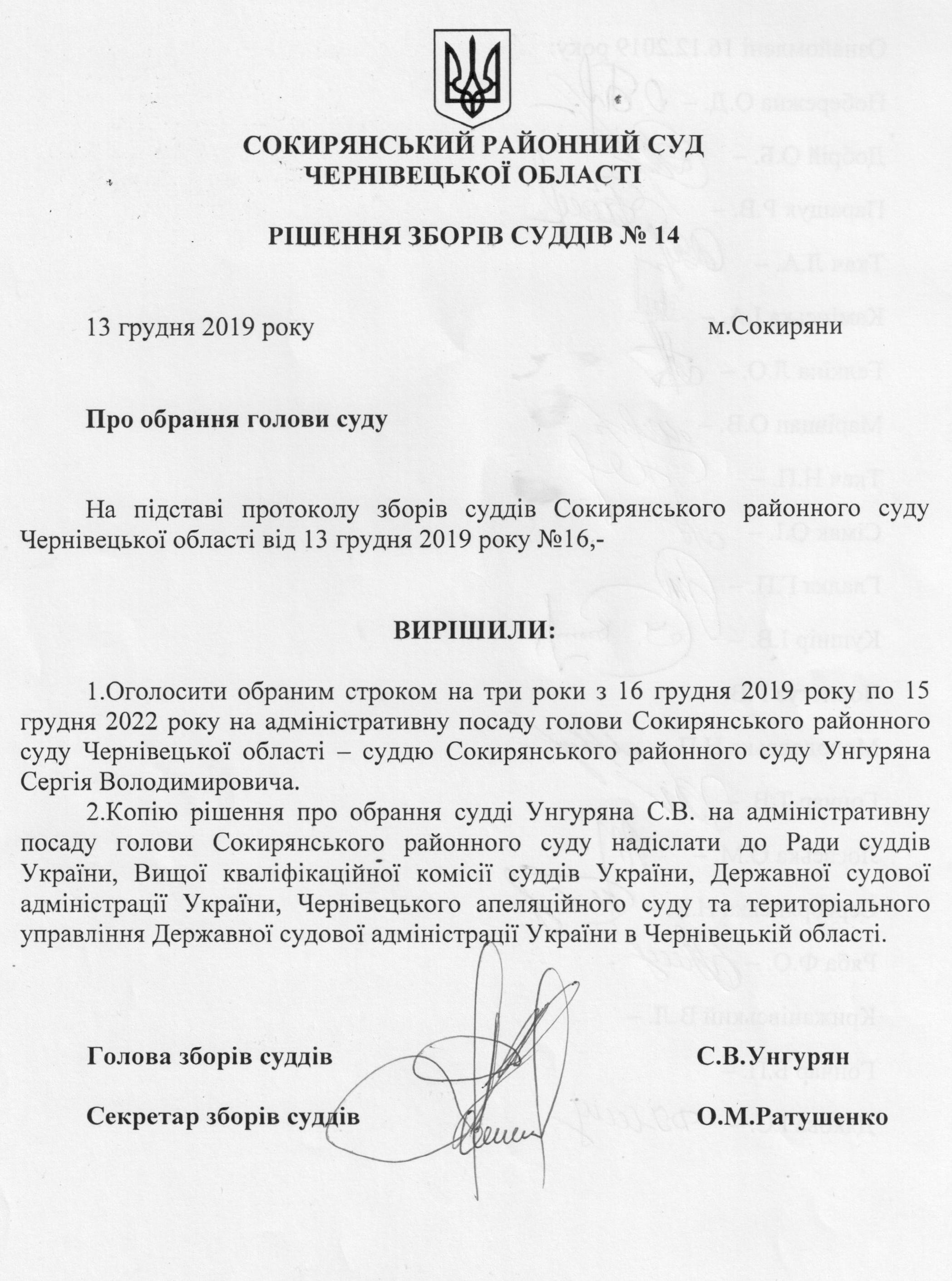 Рішення зборів № 14 (Про обрання голови суду)