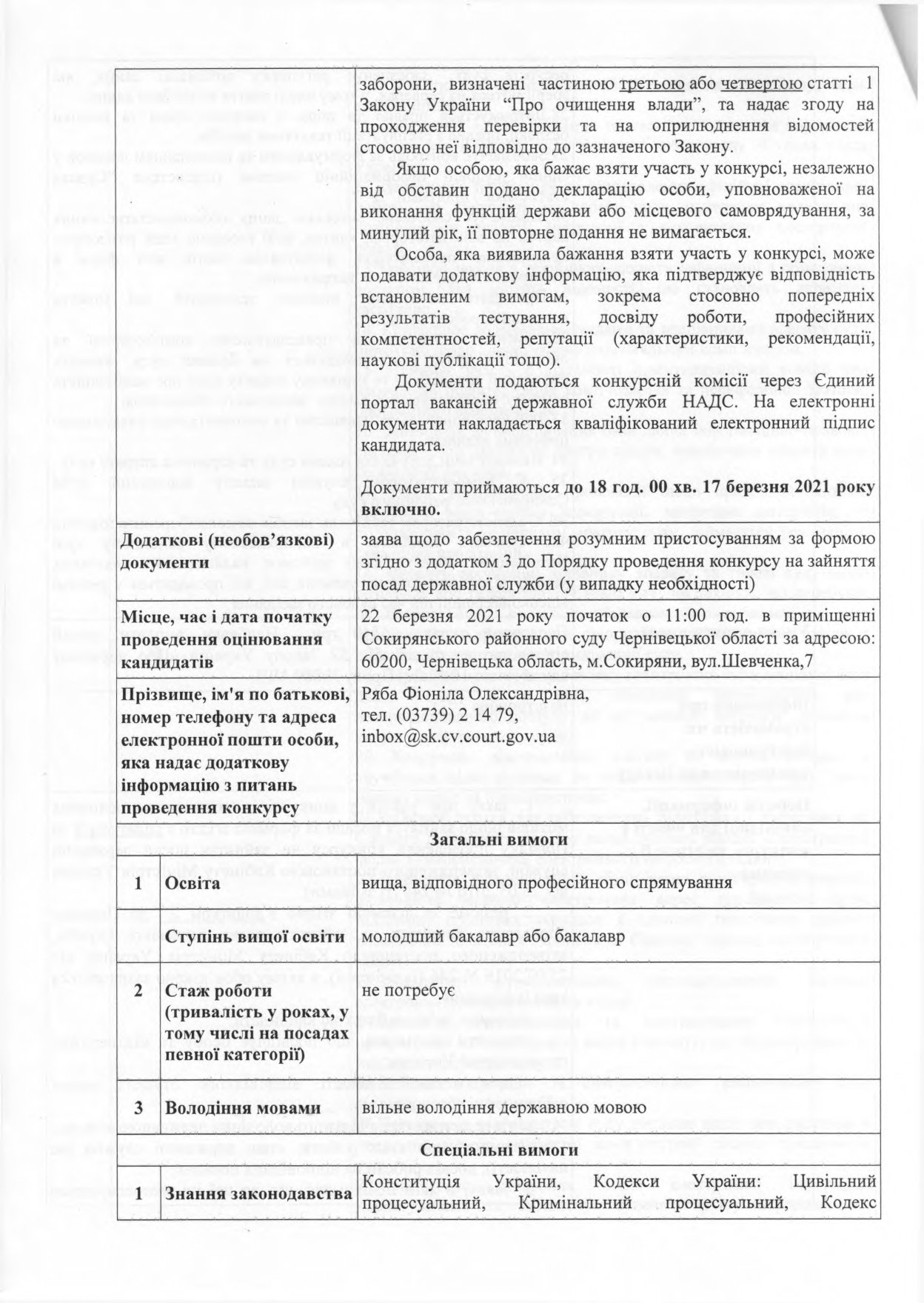 Про оголошення конкурсу на зайняття вакантної посади державної служби категорії "В"