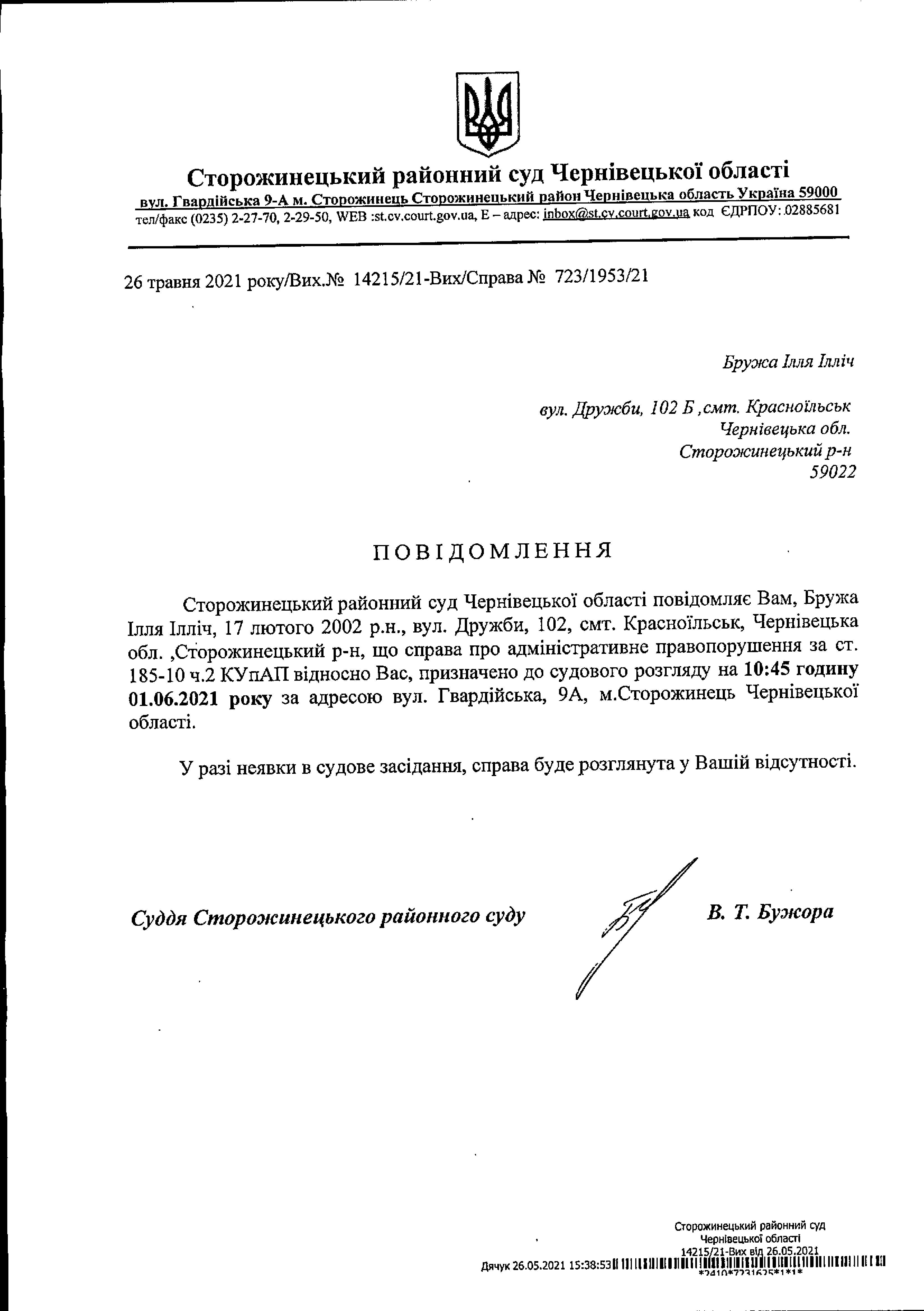 Оголошення про виклик до суду Бружа Іллю Ілліча