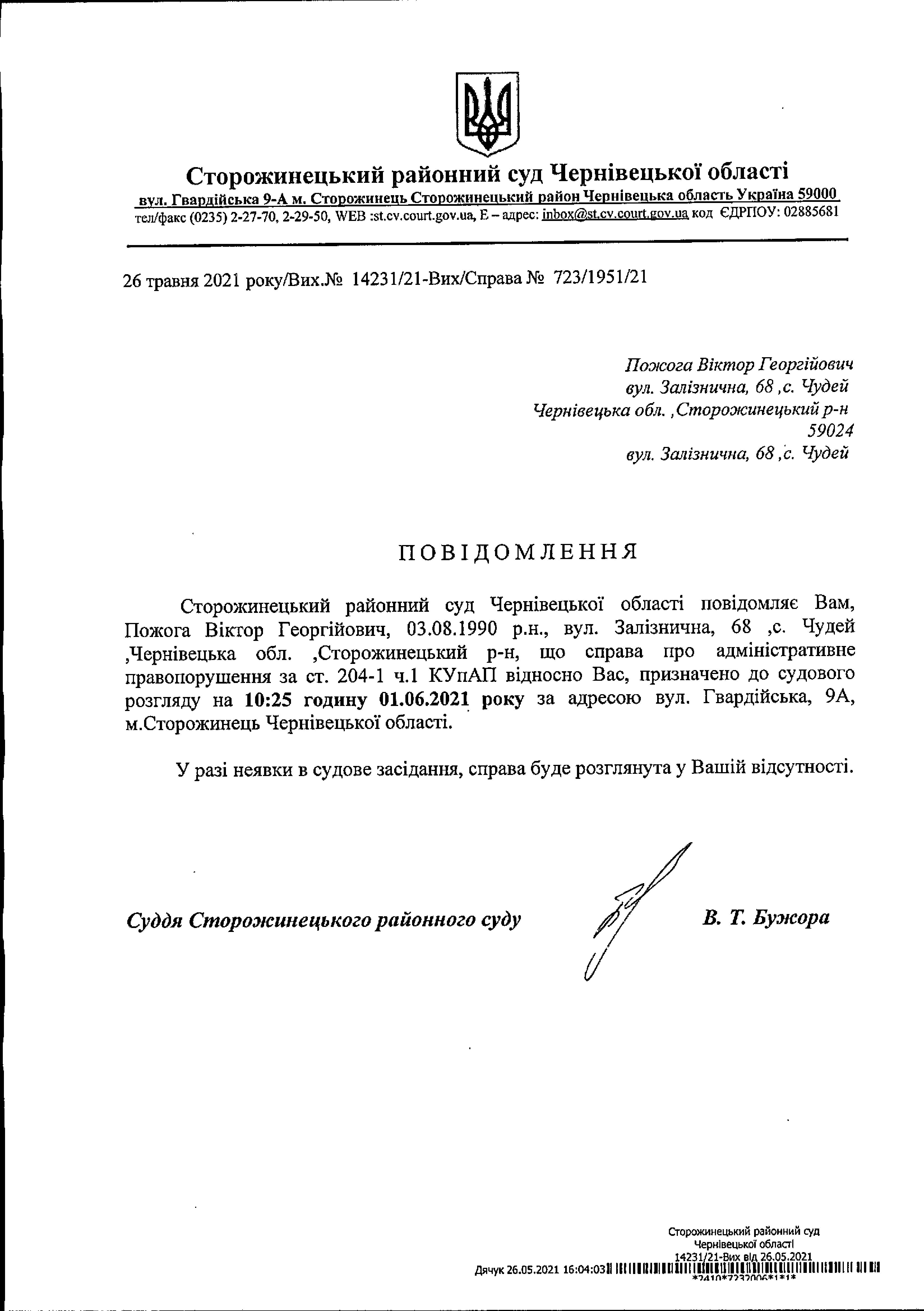 Оголошення про виклик до суду Пожогу Віктора Георгійовича