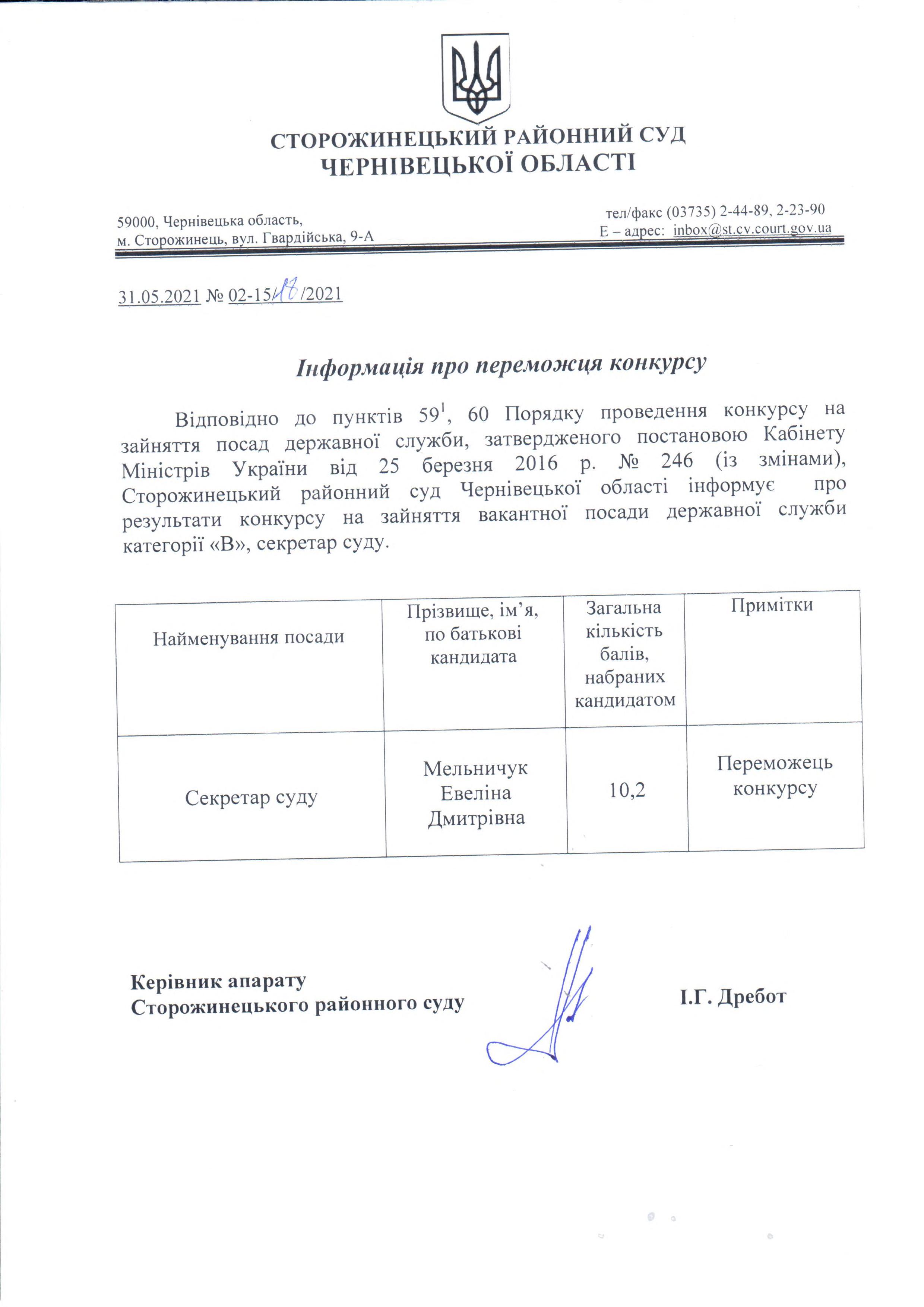 Результати конкурсу