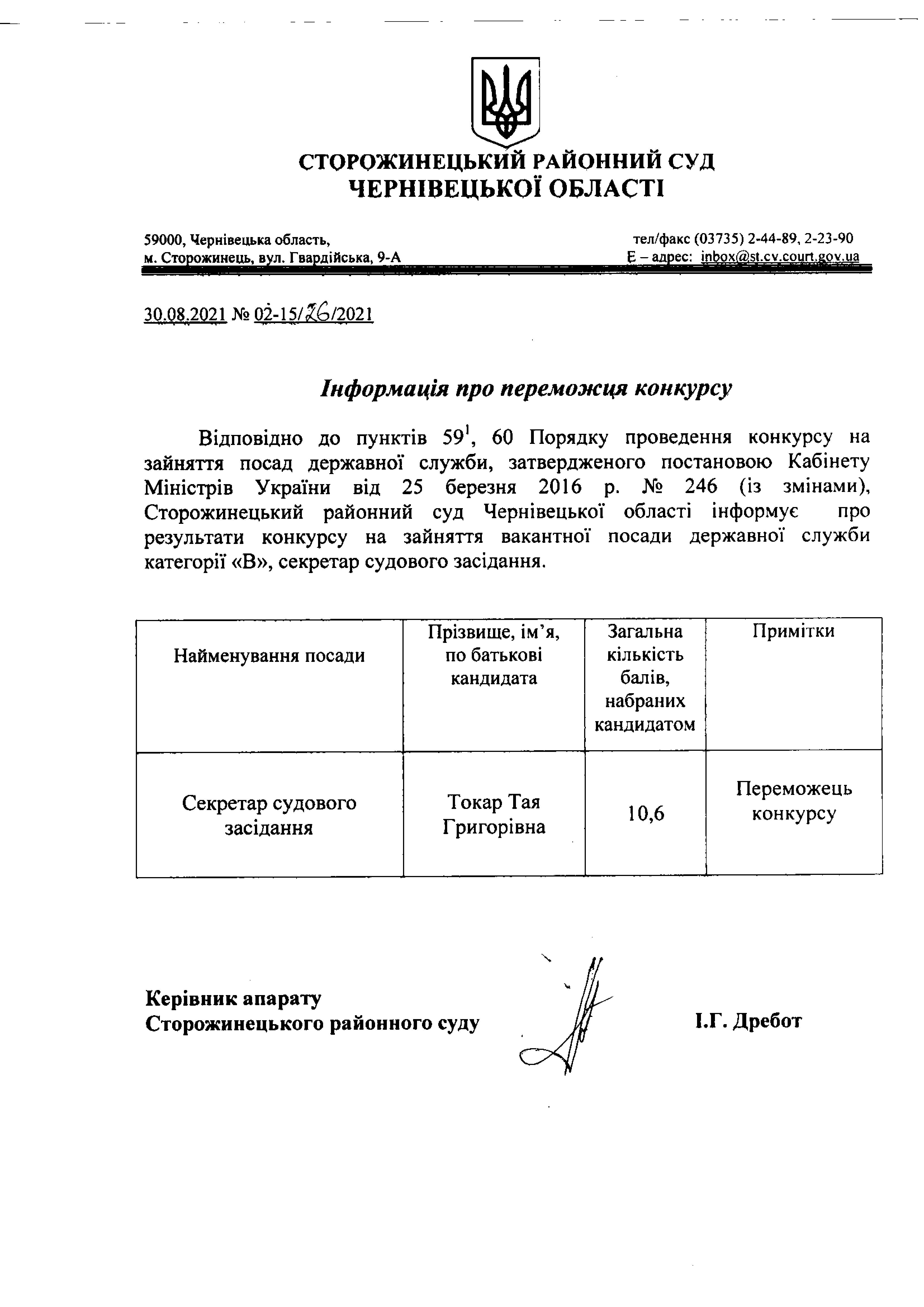 Результати конкурсу