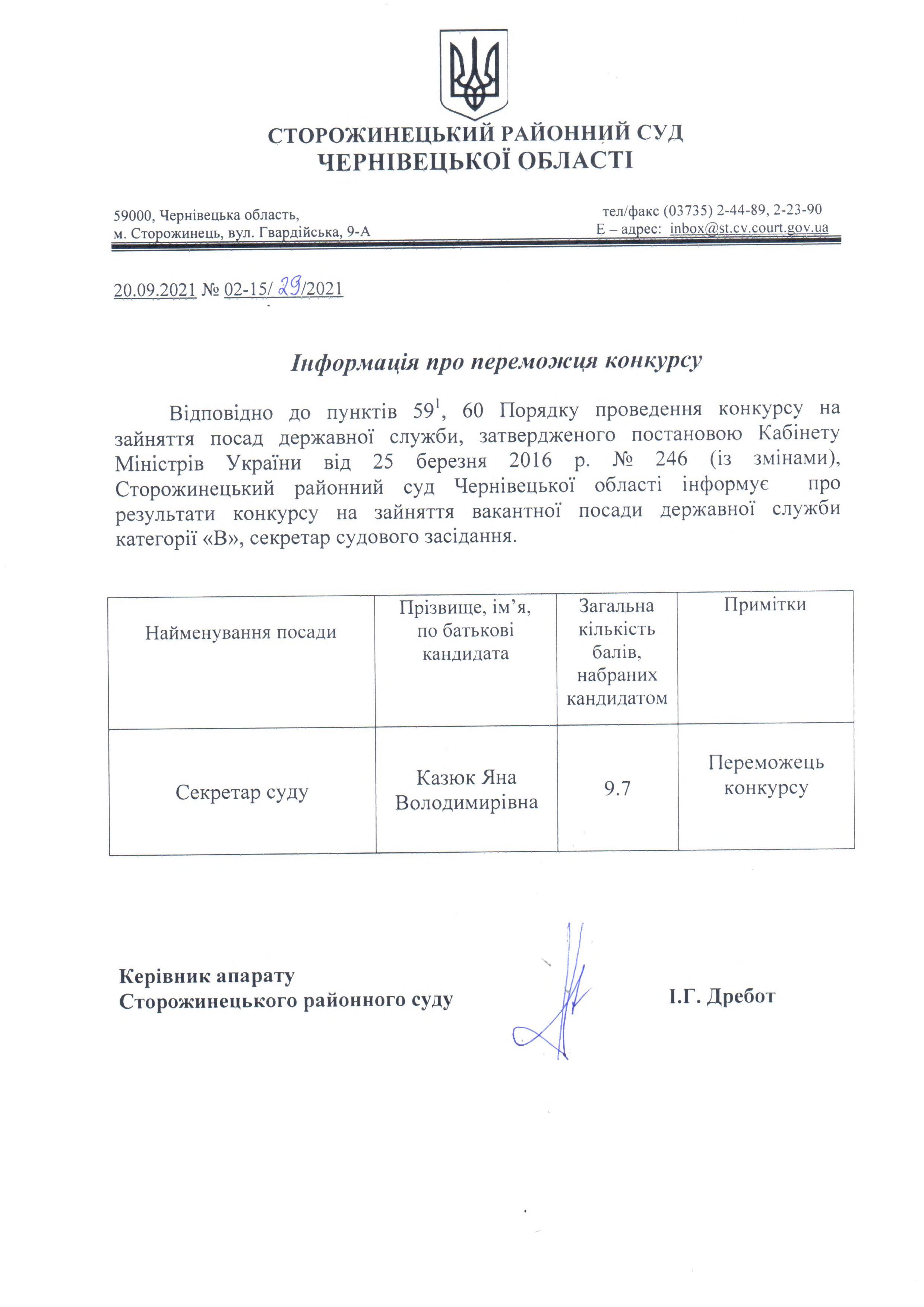 Результати конкурсу